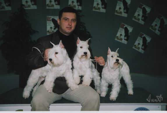 "In 2002 wurde die Zwingername " Star ´ s of White Night " registriert. Momentan haben schon acht Zwergschnauzer-Würfe und zwei Riesenschnauzer-Würfe diese Zwingername. Schon seit vielen Jahren umgeben mich Freunde, die ebenfalls treue Anhänger der Schnauzerrasse sind. Zu meiner Zeit habe ich ihnen allen geholfen einen eigenen Zwergschnauzer „großzuziehen“. Jetzt sind schon viele von ihnen vollig selbstsändig und kommen mit ihren Hunden gut zurecht.